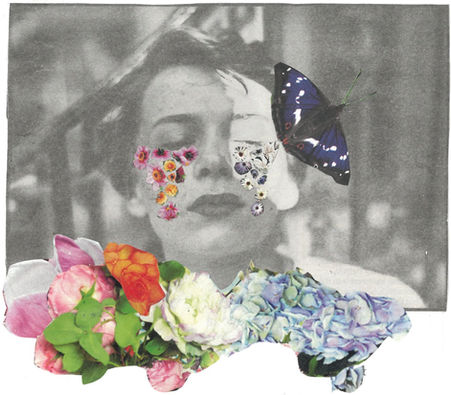 I created these photograms by layering and overlapping natural forms (leaves and flowers) on light-sensitive paper and exposed them to light and developed them, to resemble how Ben Giles collages photographs of flowers over images.